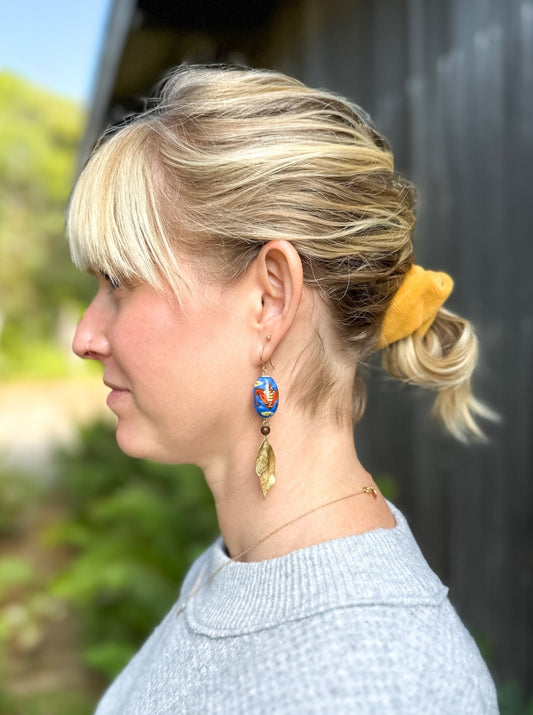 Vintage Porcelain Hand Painted Bead Earrings with Dragons and Brushed Brass LeavesRegular price $42.95 USDRegular priceUnit price per-