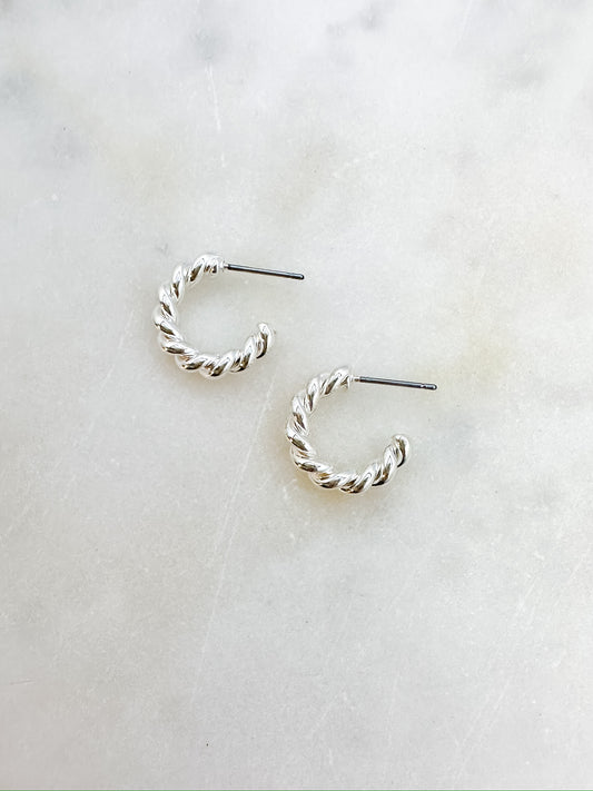 Brass Spiraled Rope Huggie Hoops in SilverRegular price $28.95 USDRegular priceUnit price per-