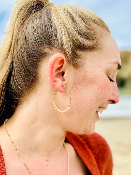 Simple Beaded Hoops in Gold and Iridescent PeachRegular price $29.95 USDRegular priceUnit price per-