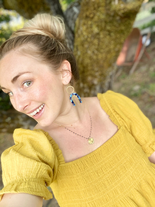 Jade Drop Hoops with Gold and Emerald Seed Beads
