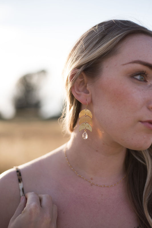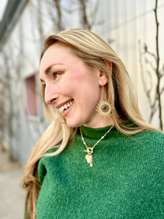 Two-Tone Double Rectangle Earrings in Green and Cream