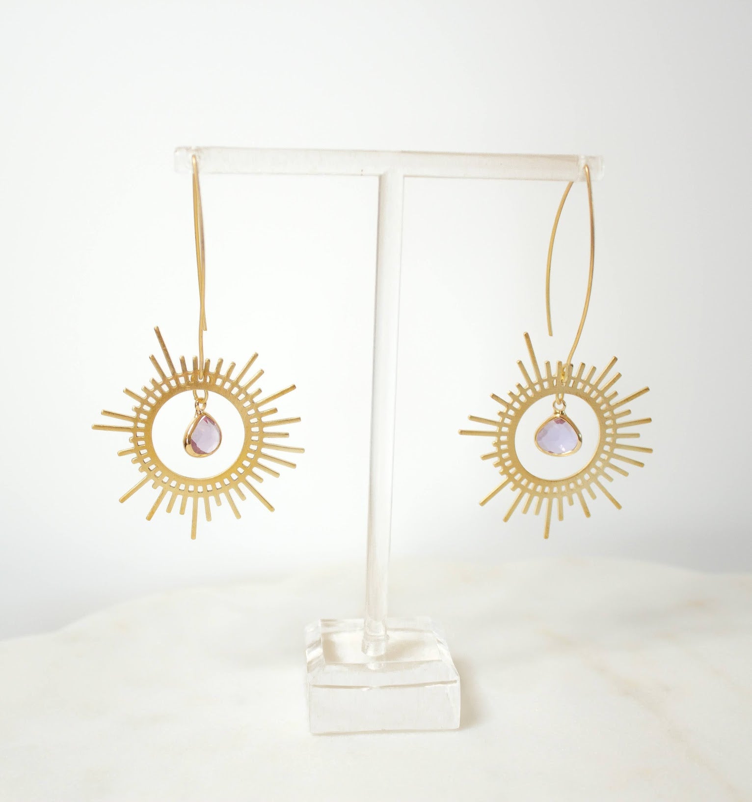 Brass Sunburst Earrings in Lilac