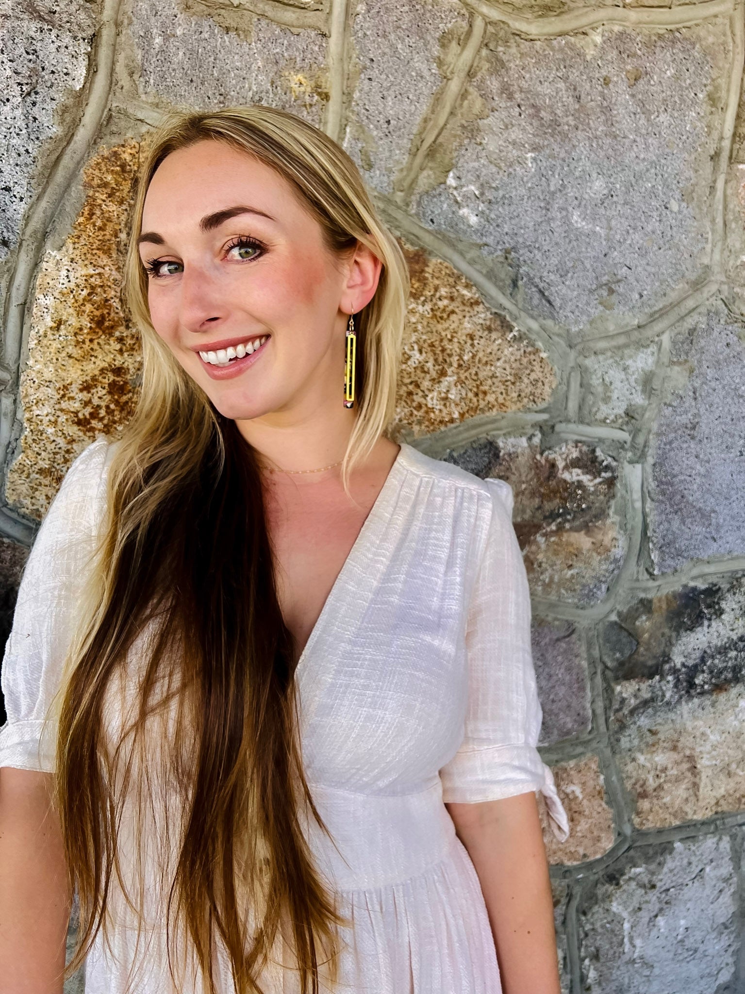 The Multi Bar Earrings feature a trendy, simple design for an everyday look that's versatile enough to transition from day to night. The multi colored bars offer a glimpse of color for any outfit.