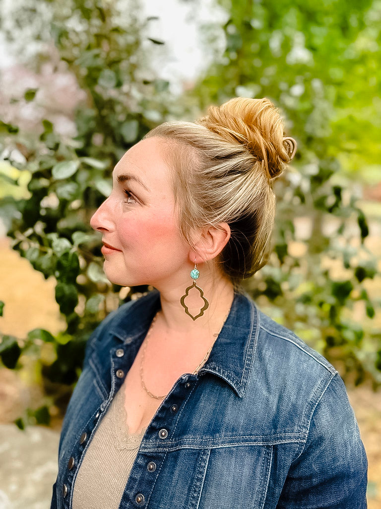 Handcrafted by artisans in Cambodia, each pair features genuine turquoise and measures 2.75" long. The hypo-allergenic design makes them perfect for everyday wear and they're packaged in compostable materials. These statement earrings are a staple item that goes with anything and make a great gift!