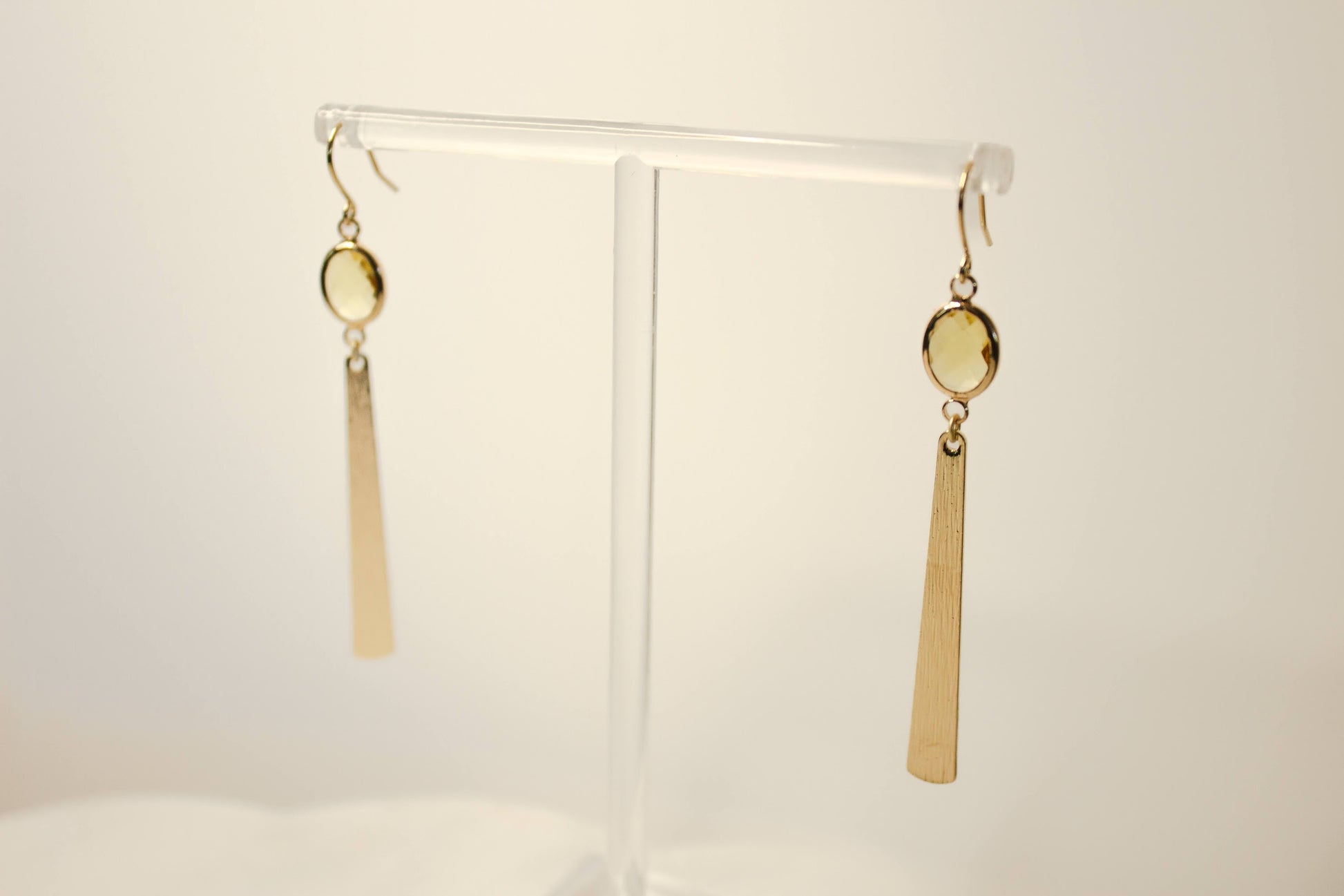 Bright, modern, and effortlessly stylish-these earrings feature a warm yellow oval beads paired with textured brass bars, creating a look that's both eye-catching and understated. Their simple elegance makes them a versatile accessory you'll reach for again and again.